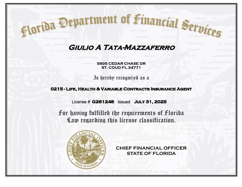 Soy un agente de seguros licenciado en más de 10 estados de los Estados Unidos, cumpliendo con todos los requisitos y regulaciones tanto a nivel estatal como federal.